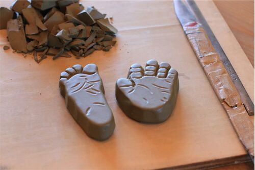 誕生記念の手足型瓦…土の塊から徐々に小さな手足が出来上がってくると、妙に母性(父性)が湧き上がってきます(笑) この子も大きくなって生意気な口をきくようになりだしたら、この小さな自分の手足を見るたびに改めて親に感謝するきっかけになれば! パパ・マ…